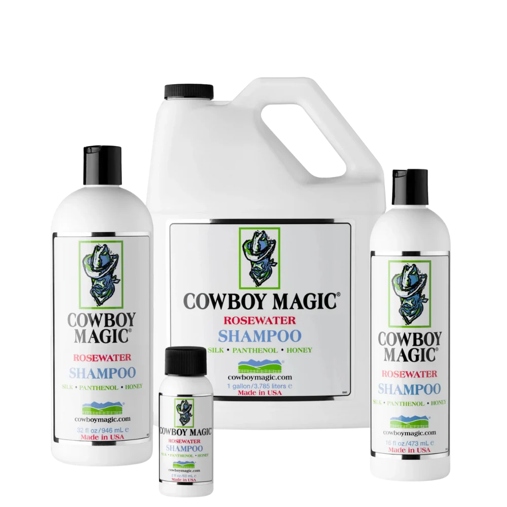 Cowboy Magic® Rosewater Shampoo reinigt en conditioneert haar en huid in één stap. Geconcentreerd, zuinig in gebruik en geschikt voor alle vachtsoorten.