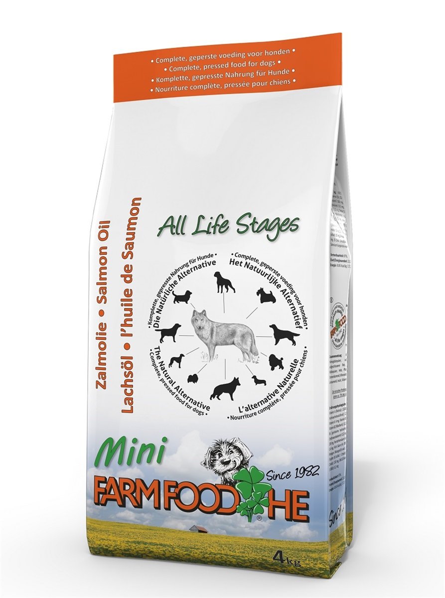 Farm Food HE met Schotse Zalmolie Mini is een koud-geperste, complete hondenvoeding voor alle leeftijden. Verrijkt met natuurlijke zalmolie voor een gezonde huid, glanzende vacht en optimale vertering. Zonder chemische toevoegingen en met zuivere ingrediënten van topkwaliteit.