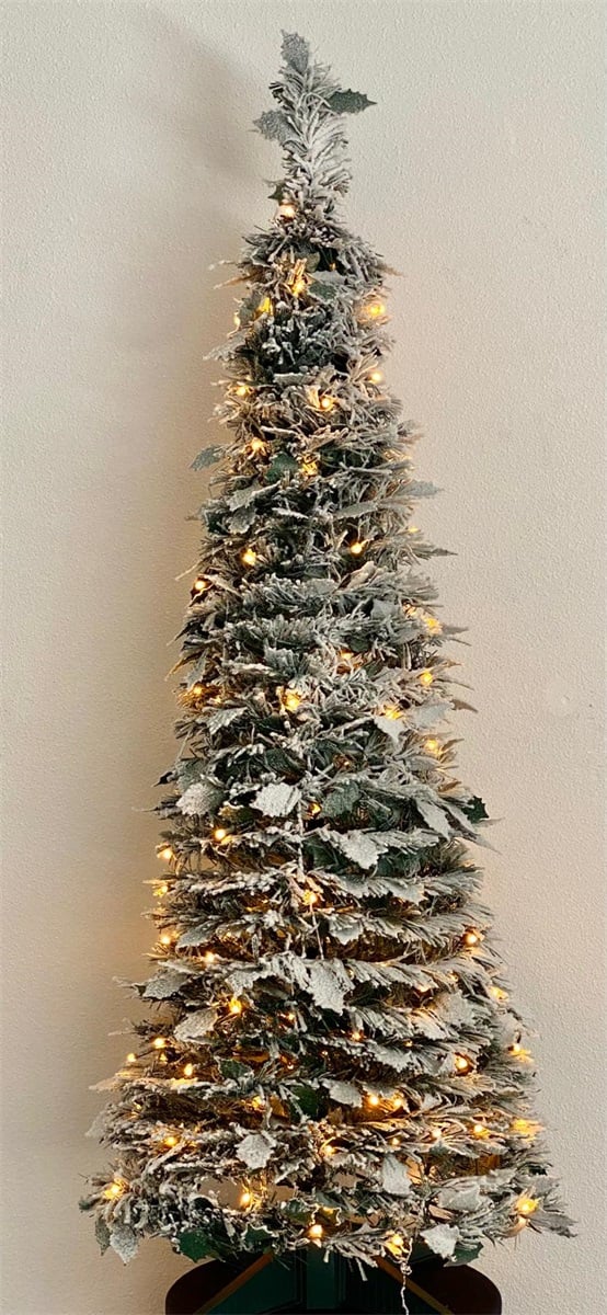 Sfeervolle pop-up kerstboom bedekt met sneeuw, geschikt voor binnen. Werkt op 24 Volt en op te zetten in 1 minuut. Hoogwaardige kwaliteit voor een luxe uitstraling.