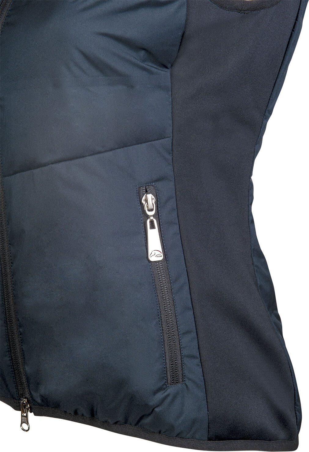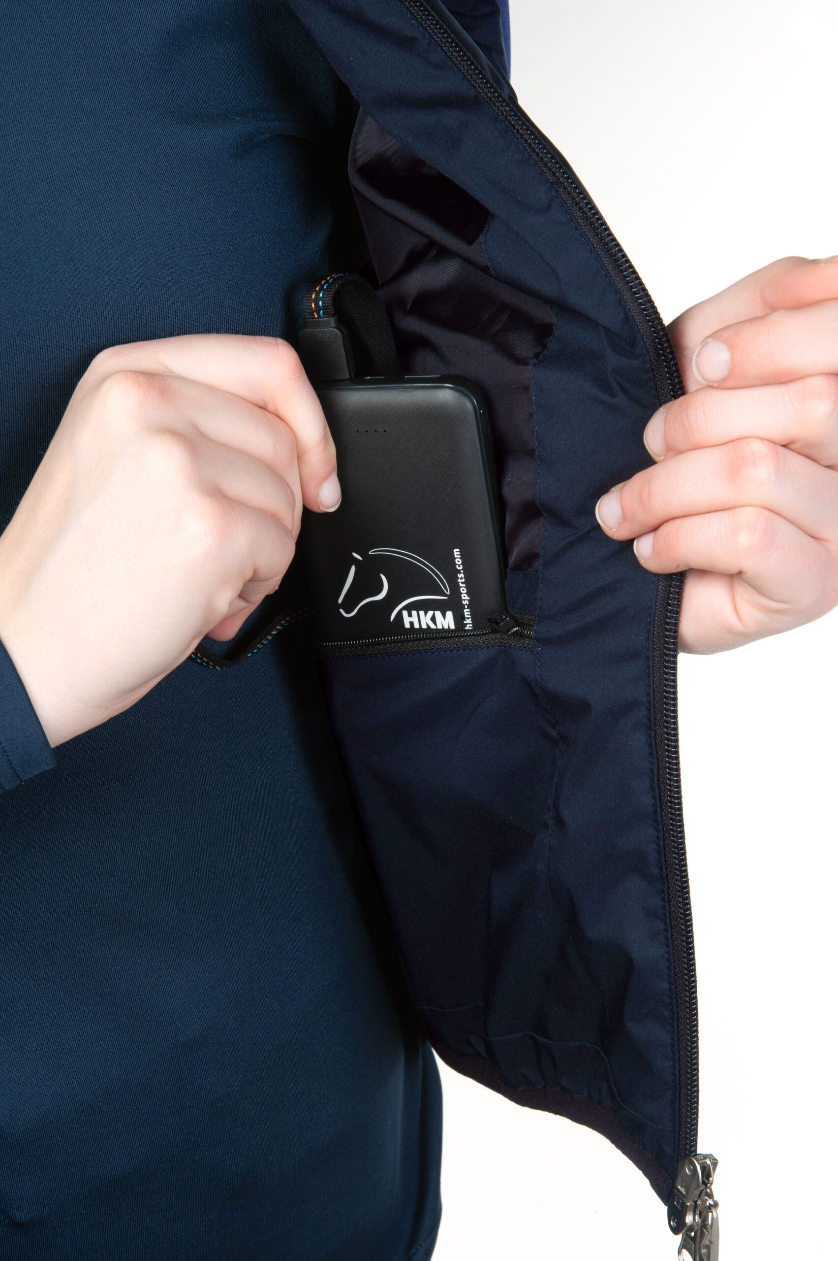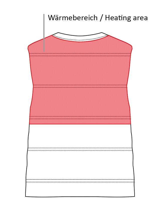De temperatuur is eenvoudig aan te passen van buitenaf, zodat je altijd de juiste warmte-instelling kunt kiezen. De geïntegreerde verwarmingszones aan de achterkant (van het bovenste rugdeel tot de taille) zorgen voor gelijkmatige warmteverdeling. Twee buitenzakken met rits bieden veilige opbergruimte voor kleine accessoires.